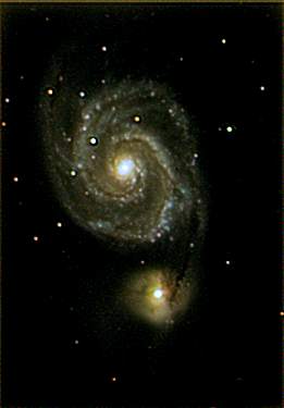 The whirlpool galaxy. The was the first astro picture I took that was 'any' good. Taken with a MX5 and some plastic filters.